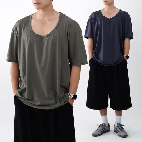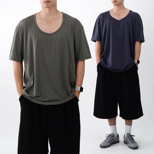 오엔엘 / 1 + 1 남자유넥반팔티 20수반팔티 머슬핏