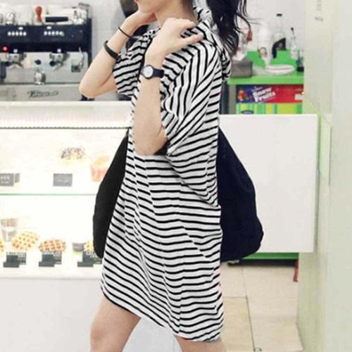 [셀럽하우스]후드 ZJOO4329 반팔 미니 원피스 스트라이프 캐주얼 루즈핏
