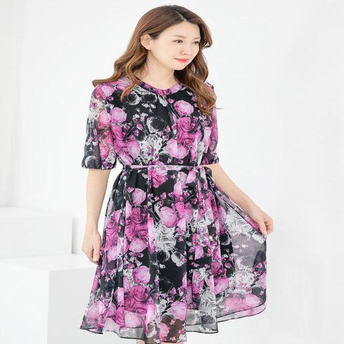 [모슬린]엄마옷 원피스 쉬폰 반팔 벨트 603FGH175 마담/중년여성/빅사이즈/50대/60대