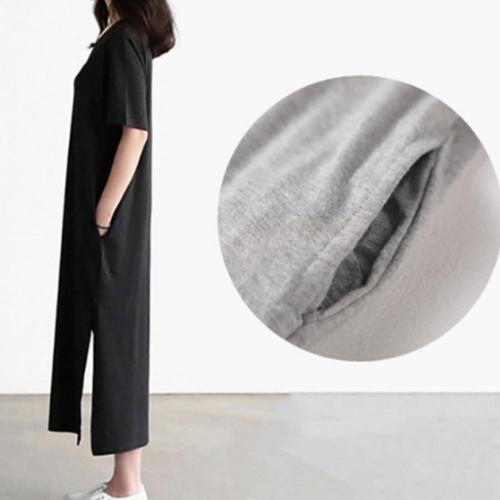 여성 브이넥 반팔 주머니 슬릿 롱 원피스 빅사이즈 WFJ4RY1