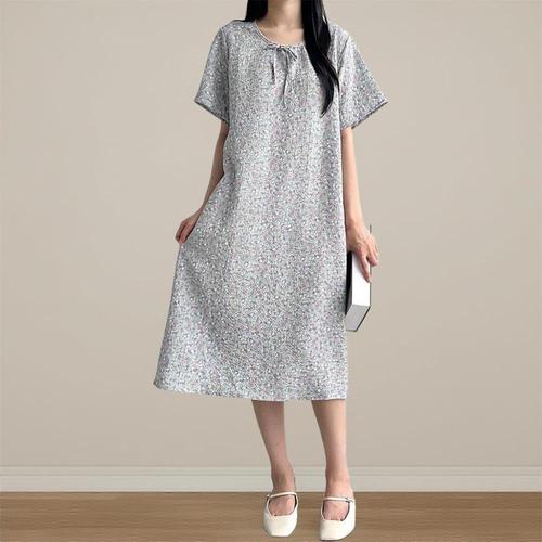 롱 반팔 데일리 프린팅 캐주얼 잠옷 원피스 여