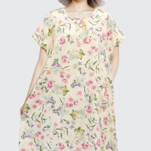 |CCO5642|여성용 꽃무늬 반팔 원피스 잠옷 홈웨어