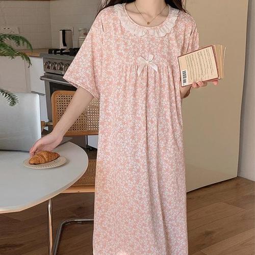 [유야]여성 귀여운 리본 면 반팔 원피스잠옷 SHO0053 여름