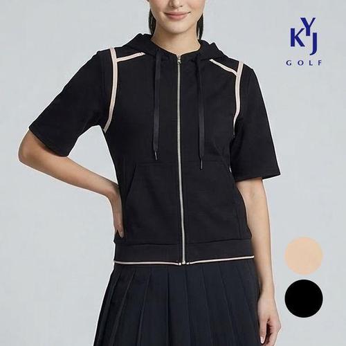 [김영주골프]봄여름 배색 쿨링 후드집업 스판 여성 골프 반팔 점퍼 DQSLJP17