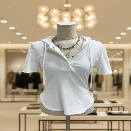 [스타일리쉬바이피클]후드 크롭 슬림 반팔 티셔츠