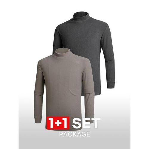 [이지바이]1+1 투엘라 남성 데일리온 겨울 기모 골지원단 반목 반폴라 티셔츠(M6OPWT08)