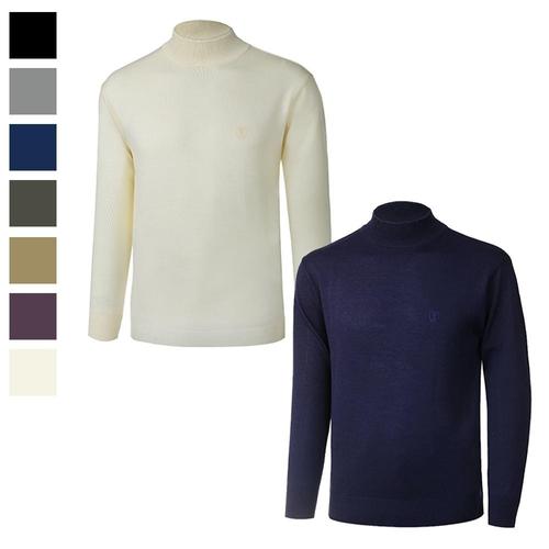 [초특가] POMTOR 남성 겨울 100% 울 반폴라 니트 스웨터 슬림핏 남자목티