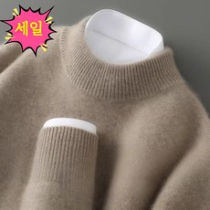 [초특가] POMTOR 가을 겨울 남성용 기모 반폴라 니트 스웨터 두꺼운 보온 울 목티 일체형 기모
