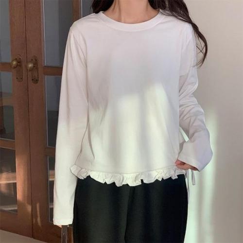 [다잇템][다잇템] 여자 코디 프릴 리본 발레코어룩 민무늬 롱슬리브 티셔츠_24432203_588872