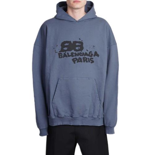[발렌시아가]발렌시아가 620973 TNVQ1 4183 핸드드로우 BB 남성 블루 라지 핏 후드 티셔츠