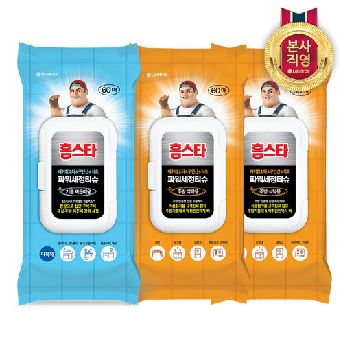 홈스타 살균세정티슈 60매 x 3개 택1(주방식탁용/기름찌든때용)