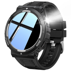 스마트워치 손전등 LED 시계 30m 방수 멀티미디어 메시지 뷰어 피트니스 만보계 스포츠 스마트워치 날씨 모니터 5cm 1.53인치 스포츠 시계 남성용, Black+silver, 블루투스