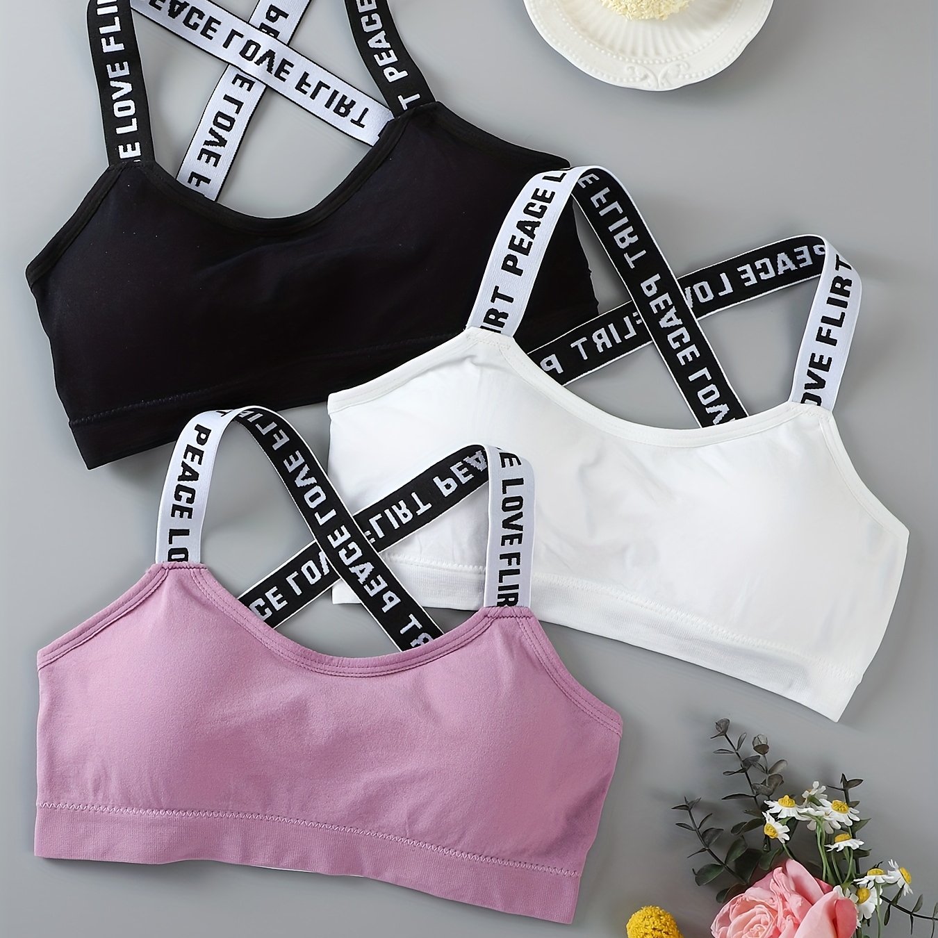 TEMU 3개입 언더와이어 브라 - 조절 가능한 스트랩리스/탈착 불가 패드, 편안한 지지력 솔리드 컬러 레귤러 핏, 9-16세 사계절용 브라, 지지력 있는 속옷 리브드 텍스처, 청소년용