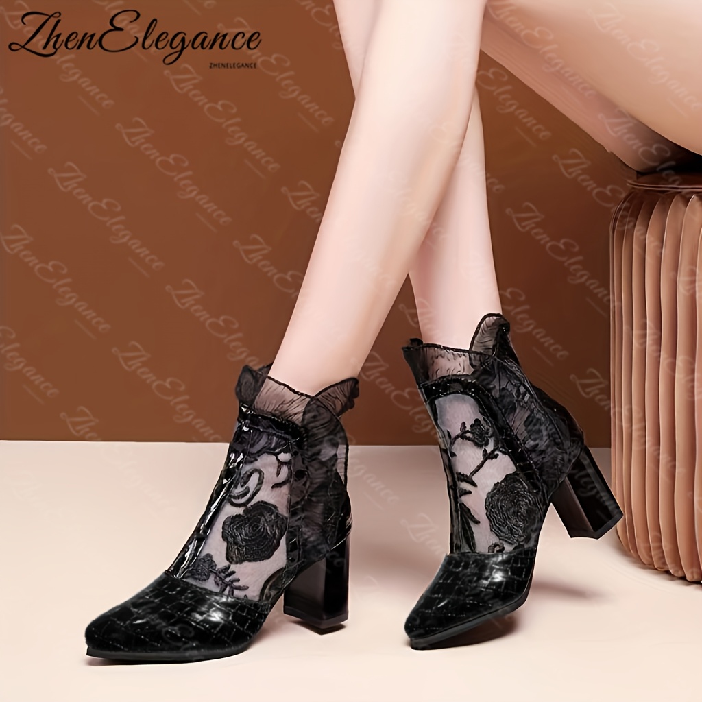 TEMU 레이스 트림 하이힐 앵클 부츠 | 우아하고 패셔너블 | 데일리웨어 또는 데이트용 여성 신발