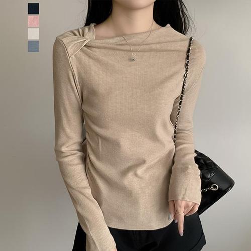 [페이릿] 베럴 넥 셔링 포인트 데일리 니트 티셔츠