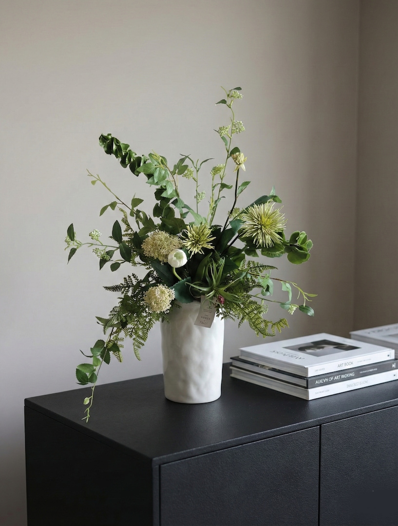 내추럴 조화 그린 소재 튤립 조화 꽃다발 거실 인테리어 돌상 백일상 촬영소품