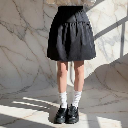 |KHK1976|여성용 봄여름 경량 셔링 티어드 밴딩 미니스커트