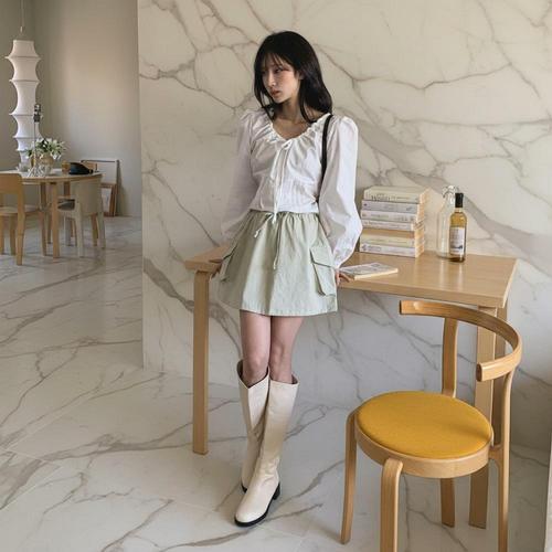 |KHK1976|여성용 봄 여름 경량 셔링 티어드 밴딩 미니스커트
