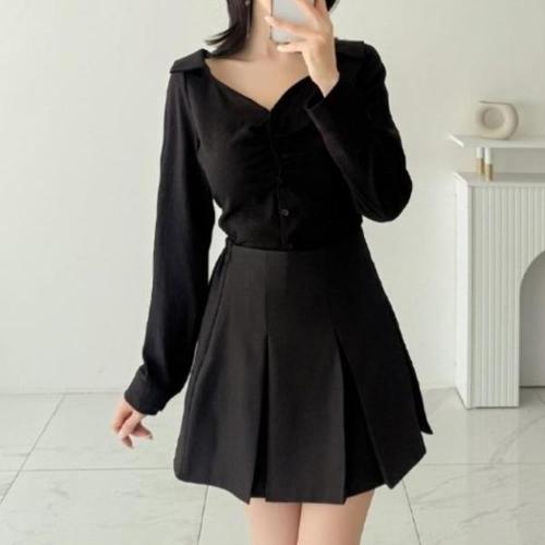 [옷자락] 여자 러블리 찰랑핏 잔주름 플레어 밴딩 미니 스커트