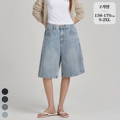 포레스트핏 / 2기장 버뮤다 워싱 밴딩 데님 반바지 (J2524)