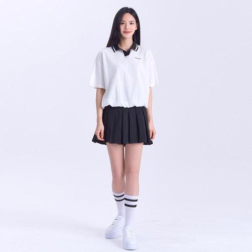 여자 테니스 골프 허리밴딩 티셔츠+흰색스커트