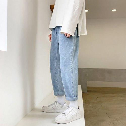 남성 9부청바지 밴딩 고무줄 남자 일자 데님팬츠 간절기 허벅돼