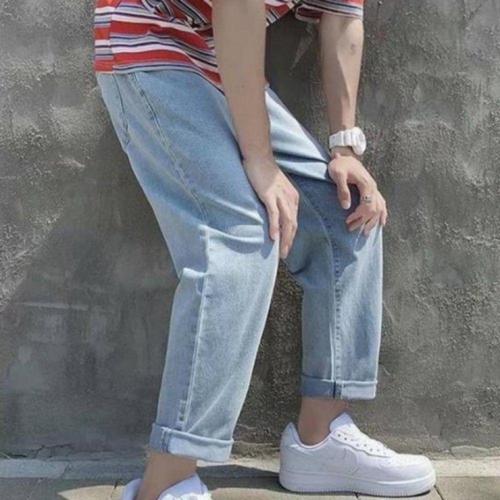 [셀러허브_여성트랜드패션]허벅돼 남자봄 청바지 9부 남자 빅사이즈 남자밴 고무줄 스판 딩청 여름 밴딩 ..