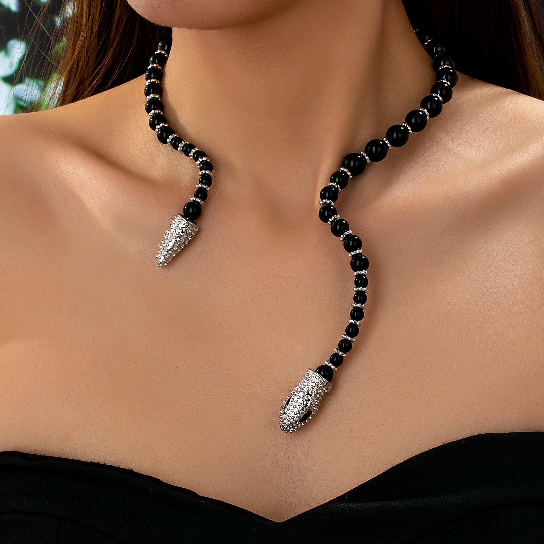 TEMU 고딕 신비한 패션 비즈 목걸이, 뱀 모양 주얼리 - 팔찌로도 사용 가능, 연회·파티·축제·할로윈에 적합