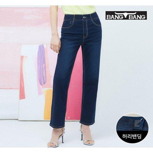 [뱅뱅][뱅뱅] 여성 썸머 스트레이트핏 스판 데님 네이비