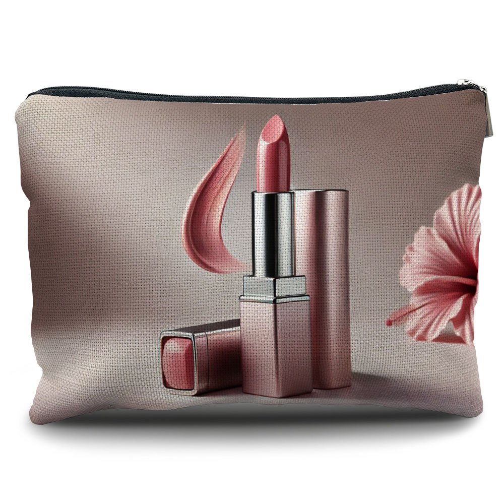 TEMU 1개 히비스커스 패턴 립스틱 휴대용 리넨 메이크업 파우치, 재사용 가능 여성용 화장품 가방, 지퍼 포장 야외 필수 보관 가방, 여성 생일, 크리스마스, 새해 선물