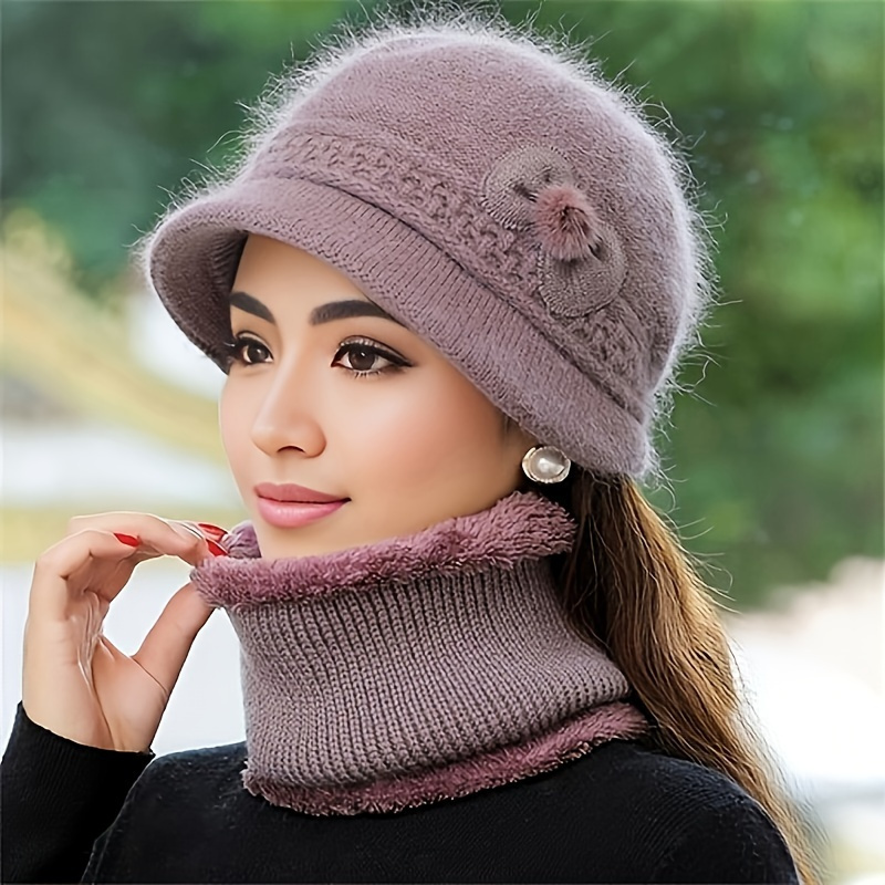 TEMU 1개 여성용 양모 모자 - 롤 브림 보온 겨울 모자, 롤플레이 코스튬 & 날씨에 적합한 신축성 있는 핏, 캐주얼 복장용 포근한 양모 비니