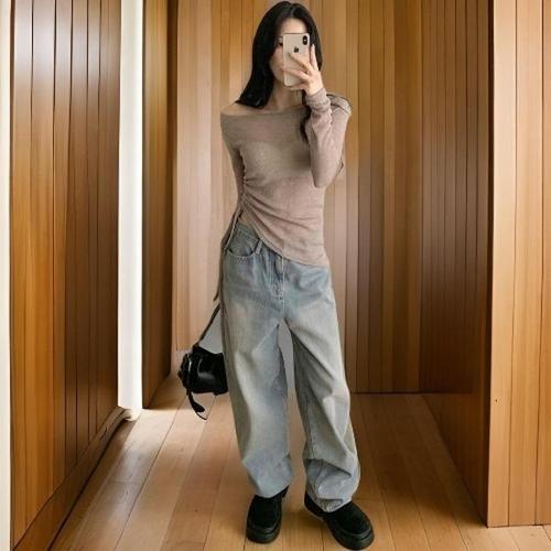 [신상오픈런]|KMT8E55|여성 시스루 비대칭 오프숄더 스트랩 벌룬 티셔츠_20720736_597559
