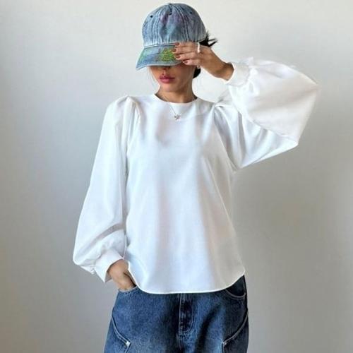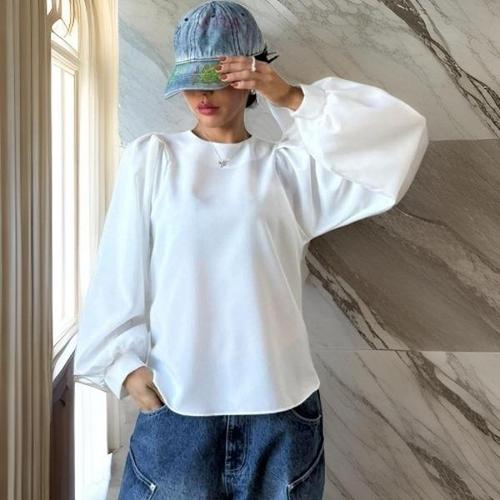 [다잇템][다잇템] 여자 펌킨 세미시스루 화이트 벌룬 SS 언발 블라우스_19676020_588872