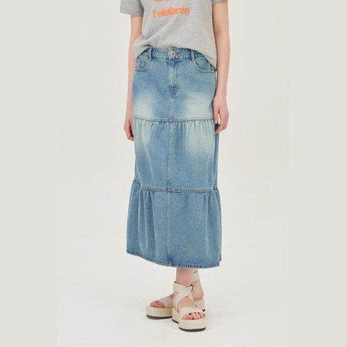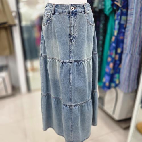 [베네통]티어드 데님 롱 스커트_BASKA5631