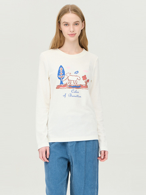 [베네통] [Online Exclusive] 양 프린팅 테리 티셔츠_BATSG9561WH