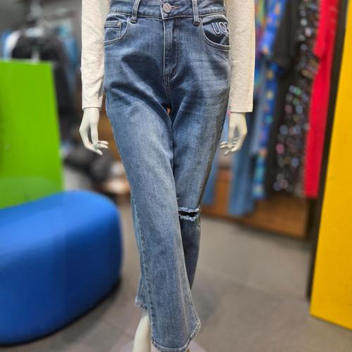 [베네통]밴딩 컬러 자수 배기 데님팬츠 BADP02411
