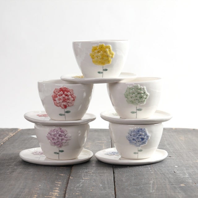 백자 수국 입체꽃 커피잔 쌍화차잔 생강차 대추차잔 5color