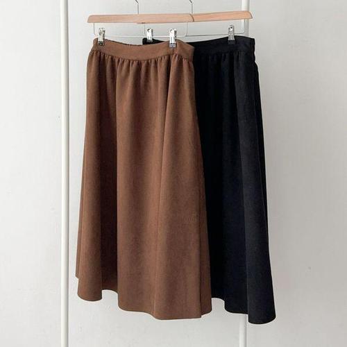 뒷 허리 밴딩 플레어 미디 스커트 (WICCSK001)