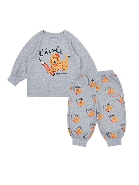[베베드피노 언더웨어] [BABY] 그레이 푸들 베이비 라운지웨어 세트_BU53UL104