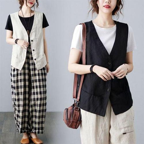 은창)페이크 포켓 라인 린넨 혼방 조끼 베스트 여름 WEF13CE