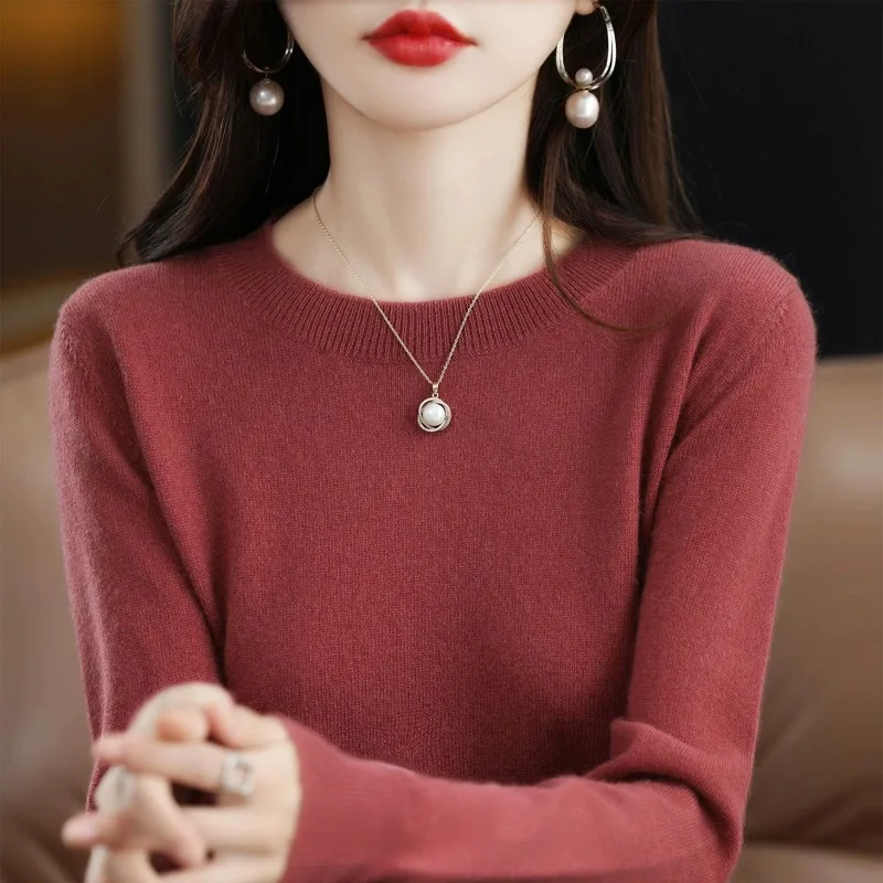 루즈핏 자수 니트 스웨터 여성용 라운드넥 니트 탑 패셔너블 겨울 다용도 베이스 레이어 긴팔 크루넥