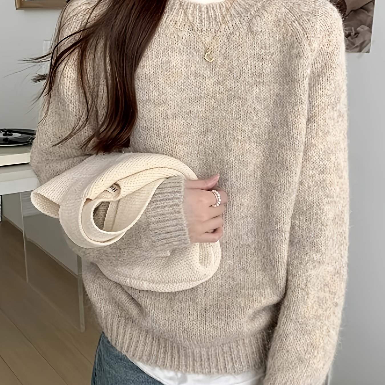 TEMU 여성용 우아한 소프트텍스처드 오버사이즈 니트 - 라운드넥 & 긴팔, 루즈핏 이너웨어로 가을/겨울에 딱! 캐주얼부터 포멀까지 다양하게 활용 (화이트/베이지) - 사계절&특별한 날을 위한 편안한 풀오버