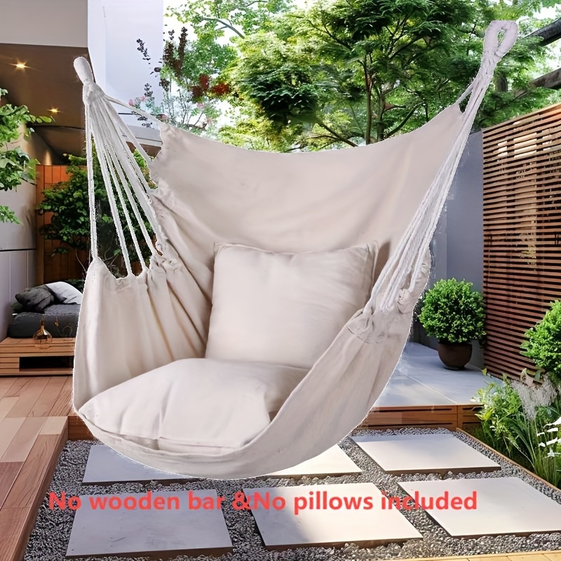 TEMU 휴대용 야외 캠핑 스윙 체어 - 내구성 있는 해먹 스타일 디자인, 가볍고 튼튼한 레저 행잉 체어, 뒷마당, 여행, 캠핑에 적합 - 블랙/화이트/그레이 (베개 미포함), 캠핑 체어, 해먹 스타일 스윙