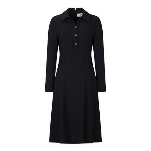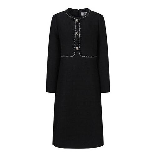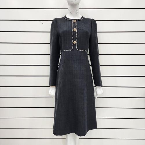 베스띠벨리 [신상 겨울 원피스 할인] 브레이드 포인트 트위드 롱 원피스 <정상가 459,000원> 검정 정장 겨울 원피스 트위드