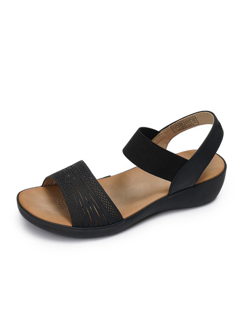 TEMU 여성 웨지 샌들 단색 오픈 토우 편안한 다용도 비치 후크 앤 루프 두꺼운 밑창 샌들, 여성 신발