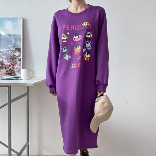 나야홍 / 빅사이즈 601 아기펭귄속기모원피스 DLIV963