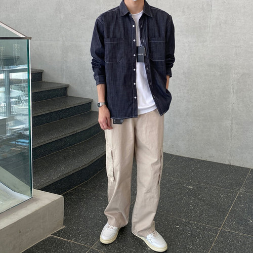 [리빌모아]남자 카고 와이드 코듀로이 골덴 팬츠 바지DJ-PTW-SGSSCF189M-베이지