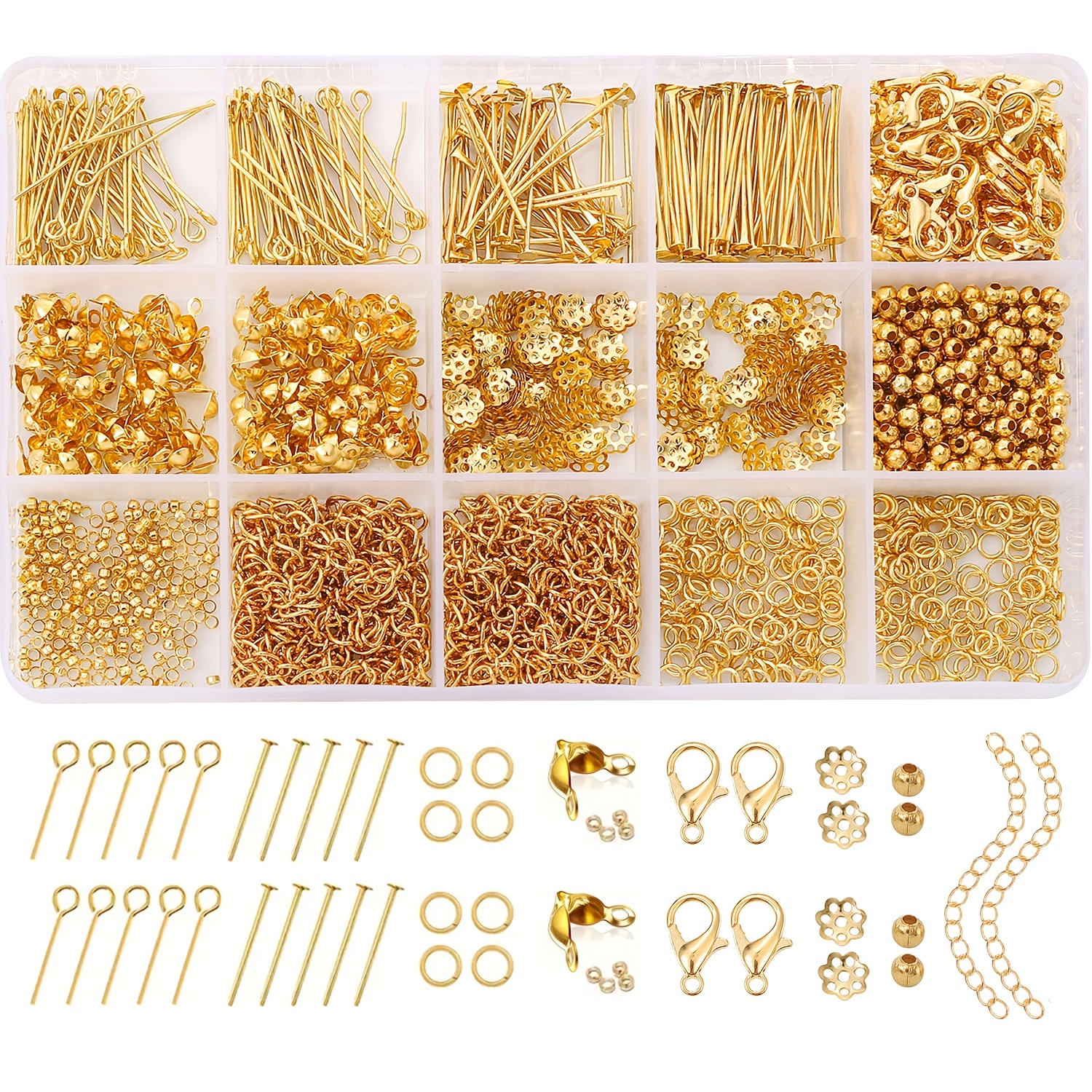 TEMU 보석 공예용 1260개 세트 (랍스터 걸쇠, 크림프 비즈, 매듭 커버, 오픈 점프 링, 추가 아이템 포함) - 보석 수리 및 프로젝트에 적합