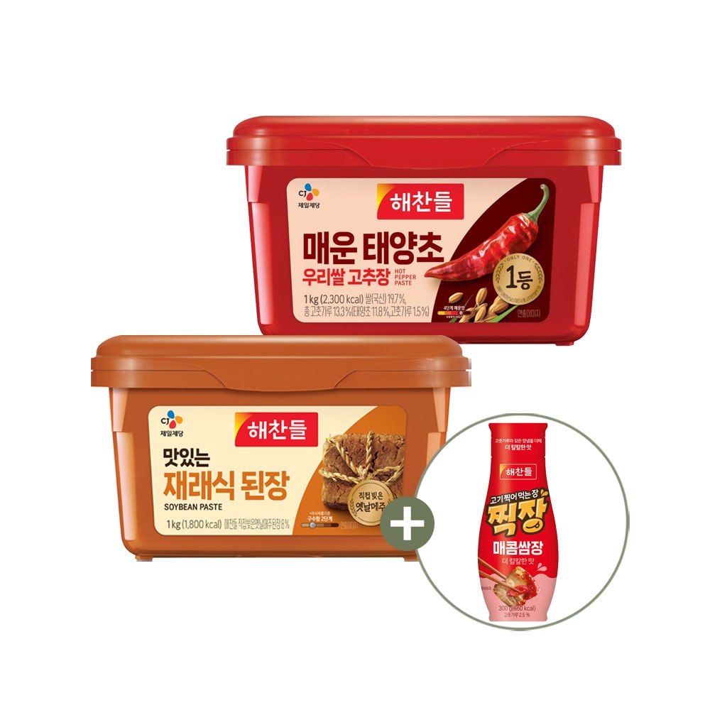해찬들 태양초 매운고추장 1kg x1+재래식된장 1kg x1+찍장매콤쌈장 300g x1