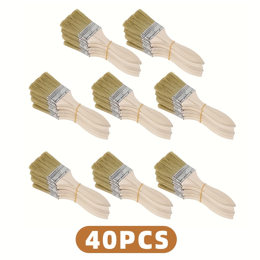 TEMU 15/40개 나무 손잡이 페인트 브러시 세트, 2인치 솔, 자연 마감용 페인팅 및 스테인드